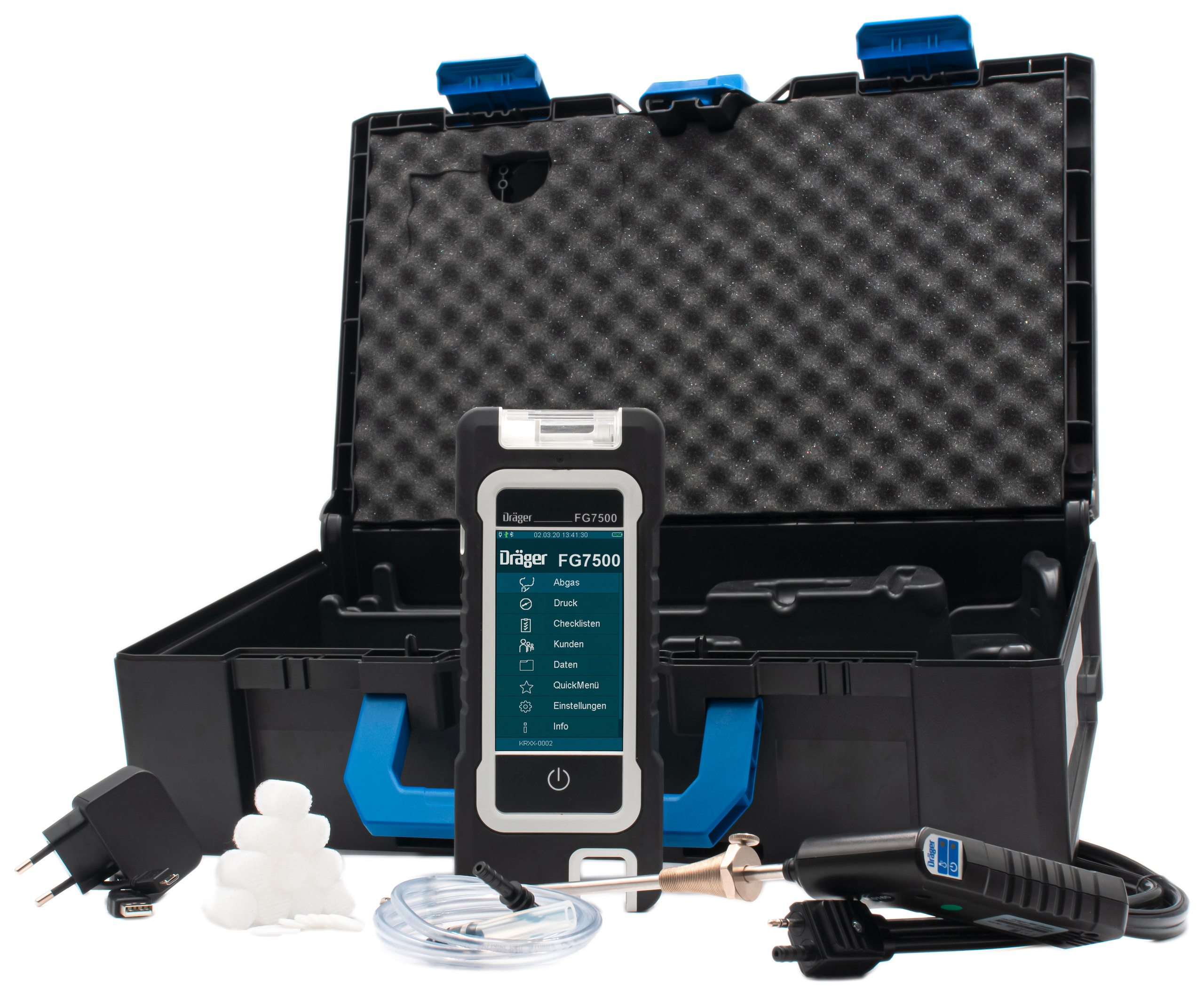Комплект прибора для измерения выхлопных газов Dräger FG7500 NO, включая измерительный канал NO, сетевой блок питания, USB-кабель, зонд выхлопных газов, напорный шланг горелки, кейс для устройства, комплект расходных материалов, Bluetooth LE и программное обеспечение. Для измерения кислорода, угарного газа, угарного азота, температуры воздуха для горения, температуры выхлопных газов, тонкой тяги, тонкой тяги и перепада давления или для проведения первого измерения BImSchV. Емкостный цветной сенсорный экран обеспечивает быстрое и эффективное использование. Приложение Dräger mCon обеспечивает максимальную мобильность и немедленный доступ ко всем текущим данным измерений. Благодаря устройству для измерения выхлопных газов работы по техническому обслуживанию можно выполнить в кратчайшие сроки. Благодаря инновационному и интуитивно понятному управлению, а также разнообразным функциям в области анализа выхлопных газов Dräger FG7500 является надежным и постоянным партнером. Его тонкий и легкий корпус также обеспечивает особенно удобное обращение.