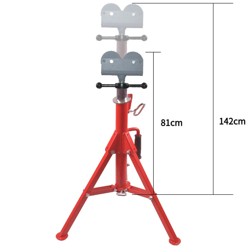 Роликовая стойка для поддержки и вращения труб диаметром до 300 мм (12"). Высота регулируется от 81 до 142 см. Складная конструкция удобна для хранения и транспортировки.