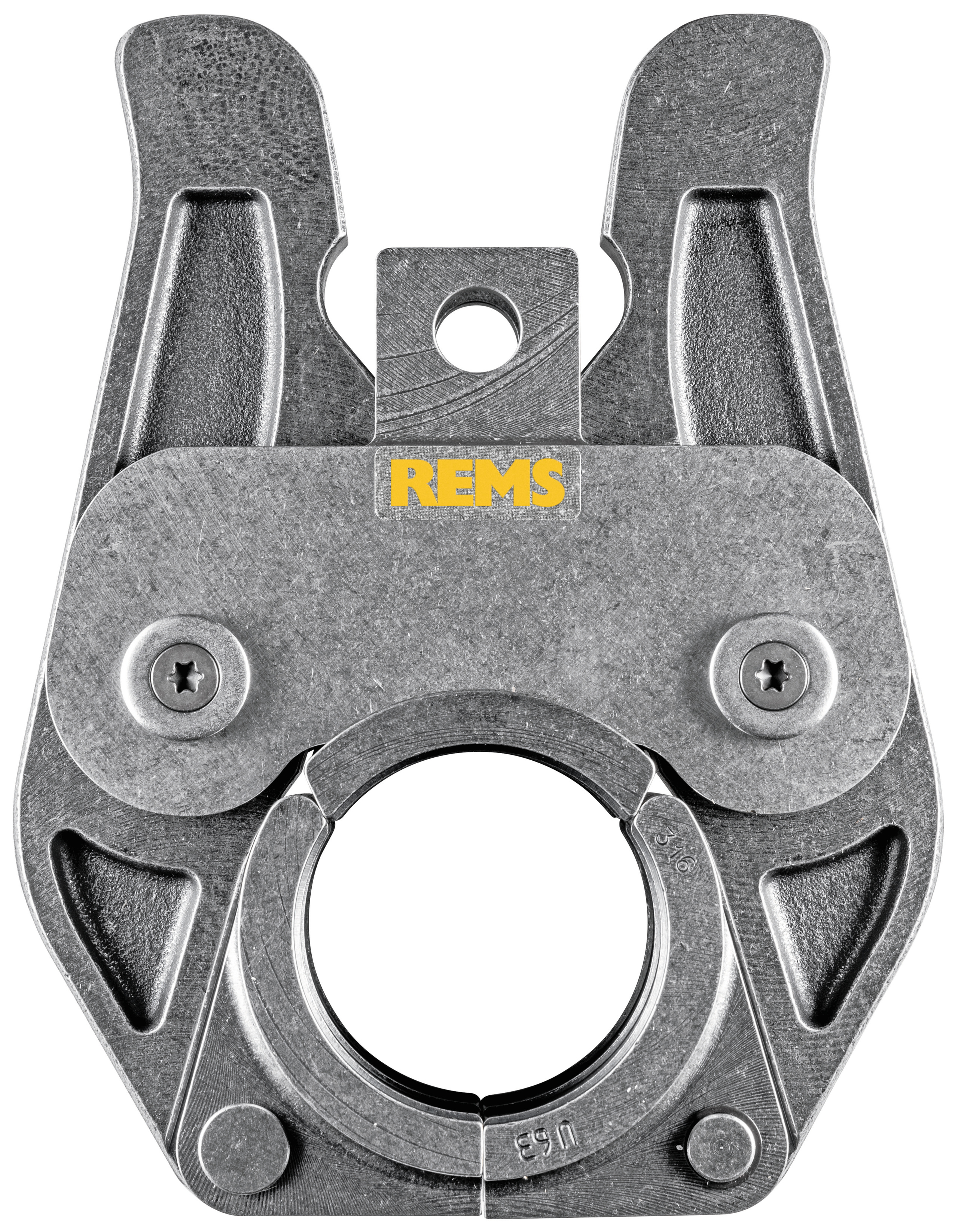 Пресс-клещи REMS (S) с одним фиксированным и двумя поворотными пресс-сегментами, для средних размеров. Пресс-клещи REMS VMPz с зубцами предотвращают образование заусенцев на пресс-втулке.