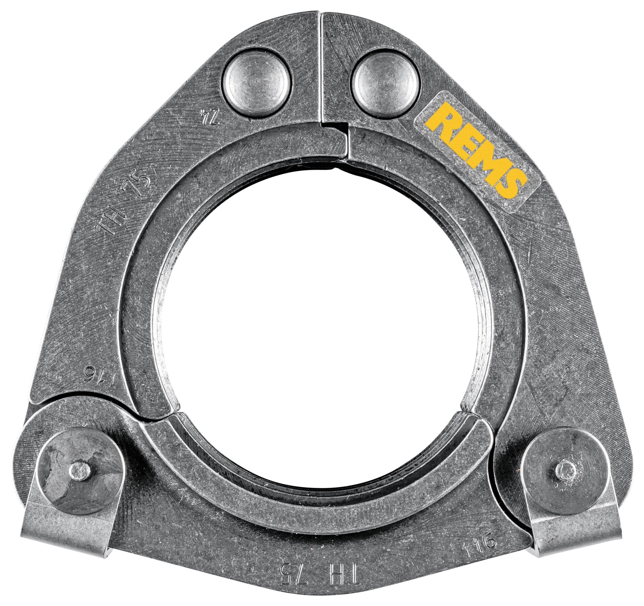Пресс-кольцо REMS (PR-3B) с 3 пресс-клещами для требовательного прессования больших размеров. Оптимальное прессование за счет радиально контролируемого движения пресс-губок с промежуточными клещами. Пресс-кольца REMS ВАУФз, ВФз, ВМПз, ВУСФз с зубьями предотвращают образование заусенцев на пресс-втулке.