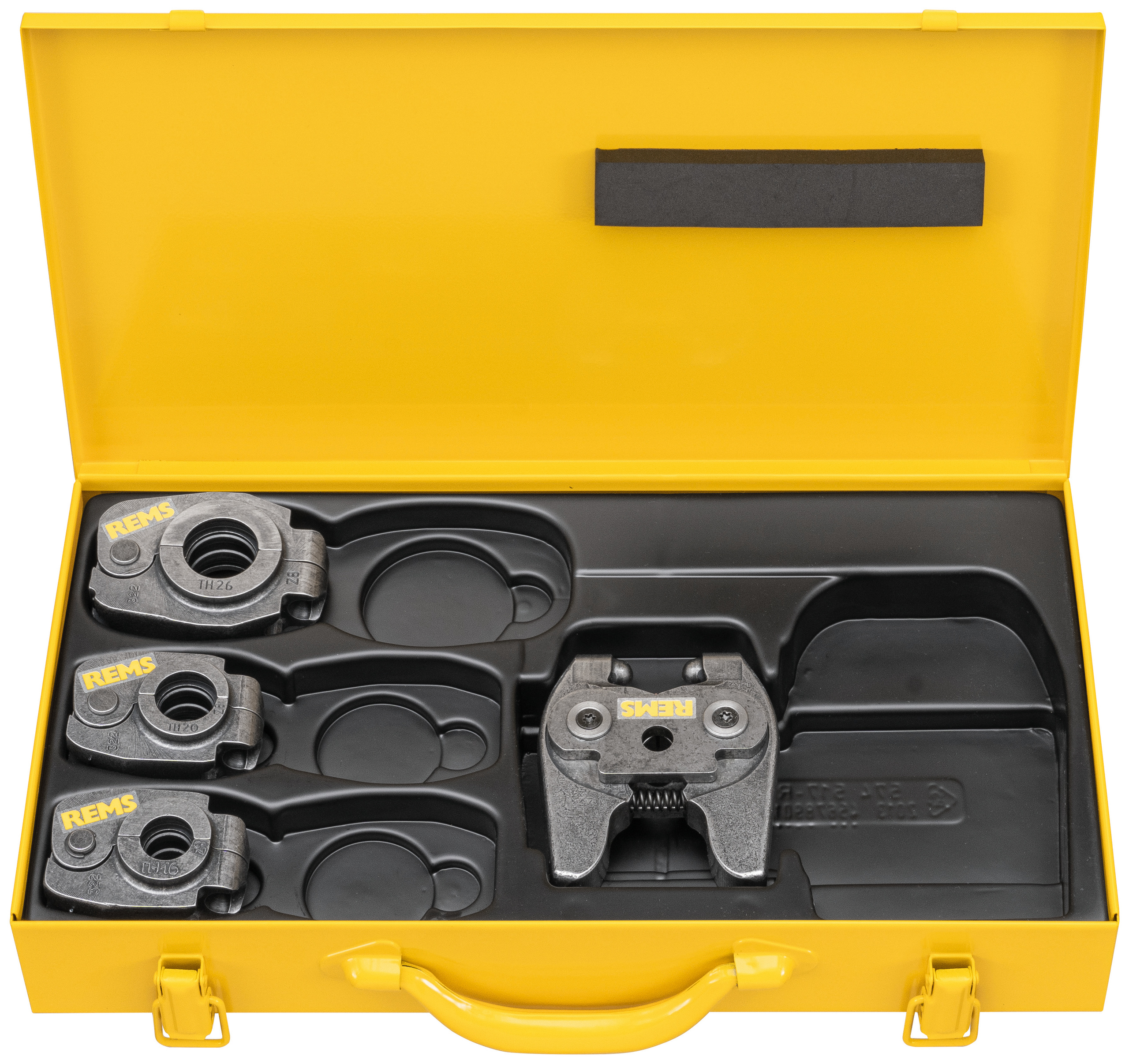 Пресс-кольца REMS S Set TH 16+20+26 Mini Z8, пресс-кольца для конкретной системы, плавно поворачивающиеся, пресс-контур TH, для подходящих систем пресс-фитинга D 16, 20, 26 мм. Пресс-кольцо плавно поворачивается с двумя пресс-клещами (PR-2B) для надежного позиционирования пресс-губок в труднодоступных местах. Высокоэластичный, изготовлен из прочной, особо закаленной специальной стали. Контуры пресса соответствуют контурам пресса соответствующих систем пресс-фитингов. Это обеспечивает идеальное системное и безопасное прессование. С пресс-контуром, обработанным с высокой точностью на обрабатывающих центрах с ЧПУ и точно закругленным на станке. Привод с промежуточными клещами Mini Z8 для всех радиальных прессов REMS 22 кН (Мини). Товар немецкого качества. Комплект поставки: Пресс-кольцо TH 16 S, TH 20 S, TH 26 S, промежуточные клещи Mini Z8, в ящике из листовой стали.