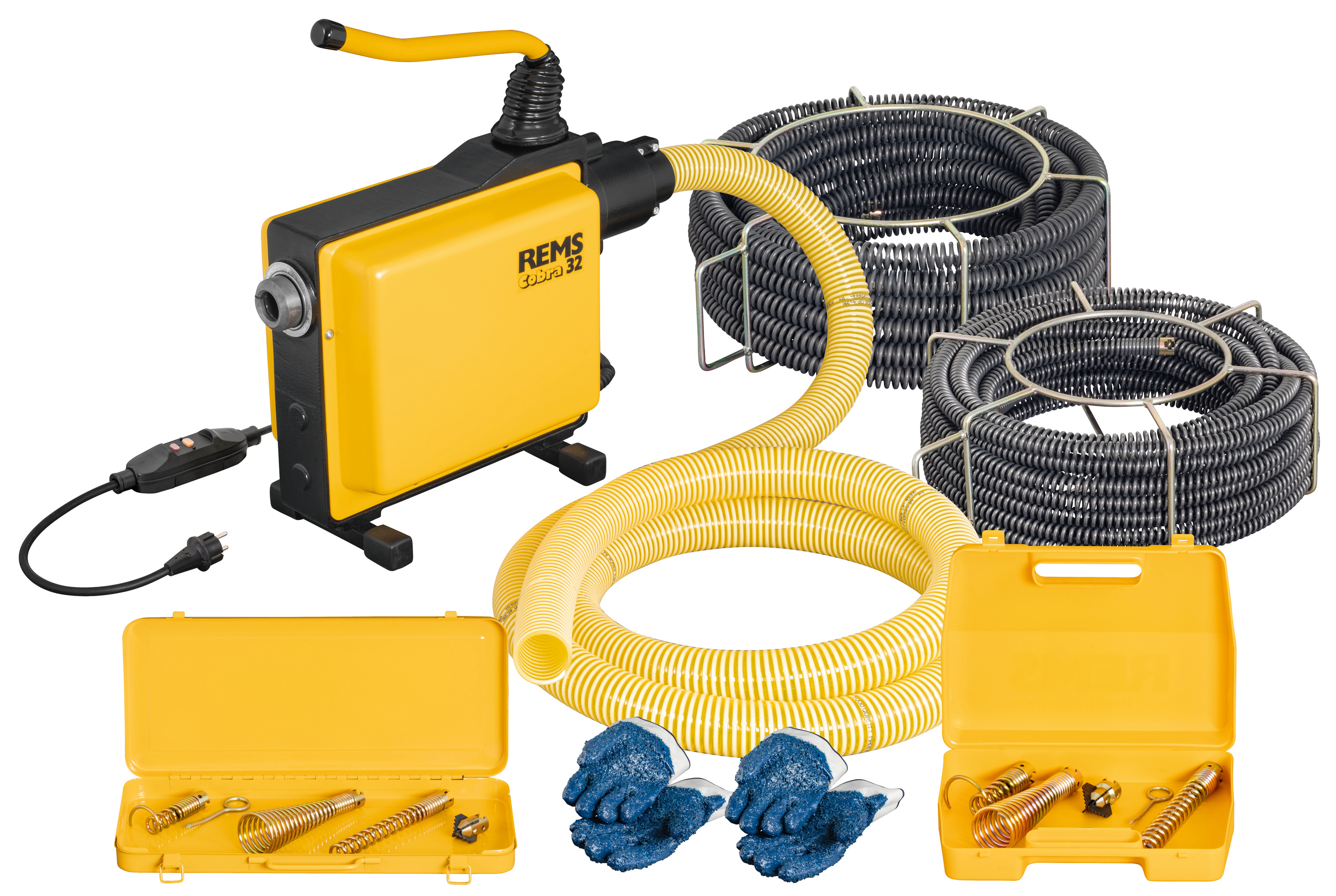 Электрическая трубочистительная машина для труб Дм. 20 - 250 мм. Приводная машина с необслуживаемым зубчато-ременным приводом, конденсаторным двигателем 230 В, 50 Гц, 1050 Вт, правое и левое вращение, направляющий шланг. Выключатель индивидуальной защиты (PRCD). 5 частичных спиралей 22 x 4,5 м в спиральной корзине, прямое сверло 22, возвратное сверло 22, воронкообразное сверло 22, зубчатое сверло с крестообразными лезвиями 22/35, разделительный штифт спирали 22/32, 4 частичных спирали 32 x 4,5 м в спирали корзина, прямое сверло 32, возвратное сверло 32, воронкообразное сверло 32, сверло с зубчатым поперечным лезвием 32/45, спиральный разделительный штифт 22/32, 2 пары направляющих перчаток, коробка/футляр из листовой стали для каждого набора инструментов. В коробке.