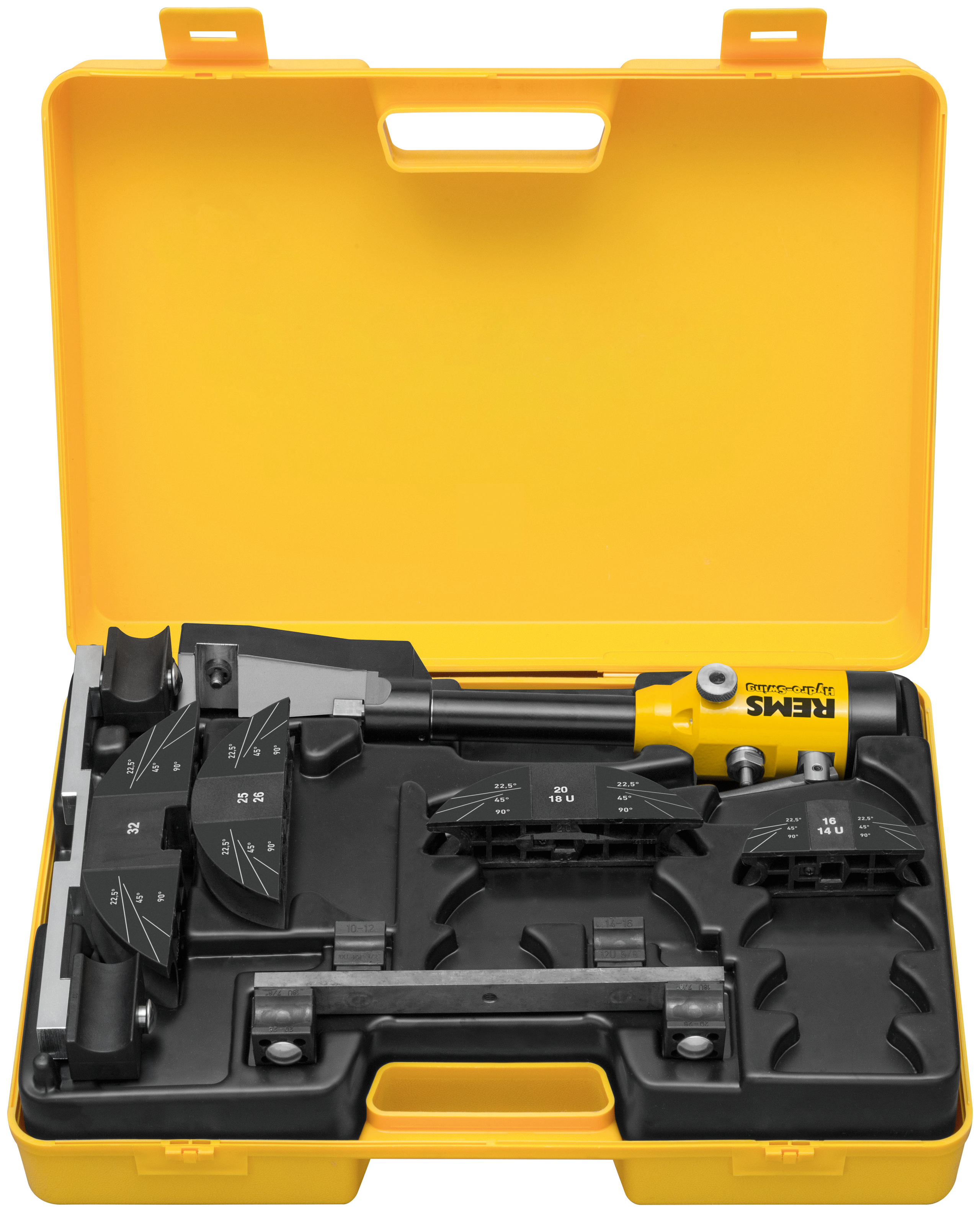 Трубогиб ручной маслогидравлический Дм. 10 - 32 мм, диаметр 3/8 - 7/8 дюйма, до 90 градусов. Мягкие медные трубы диам. 10 - 22 мм, диаметр 3/8 - 7/8 дюйма, макс. 1 мм, медные трубки с мягким покрытием, диам. 10 - 18 мм, диаметр 3/8 - 5/8"", s макс. 1мм, трубы пресс-систем из нержавеющей, никельсодержащей стали диаметром. 12–22 мм, макс. 1,2 мм, диаметр из мягкой углеродистой стали. 12–18 мм, диаметр макс. 1,2 мм, диаметр труб из мягкой прецизионной стали. 10 - 22 мм, макс. 1,5 мм, композитные трубы диам. 14 - 32 мм. До ДМ. 26 мм с приводным устройством, гибочными сегментами, держателем ползуна HS Dm. 10 - 26 мм с ползунками, в прочном футляре. До ДМ. 32 мм с приводным устройством, гибочными сегментами, 2 опорами ползуна диам. 10 - 26 мм и диаметр. 32 мм с ползунками, в прочном кейсе.